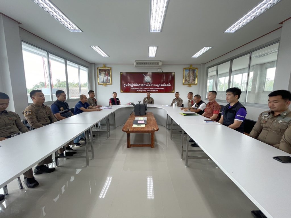 สภ.เมืองลีง ขอรายงานการปฏิบัติหน้าที่ดูความสงบเรียบร้อย วันนี้ 3 ก.พ.68 เวลาประมาณ 20.00 น. พ.ต.ท.เอกชัย สมัครสมาน สวญ.สภ.เมืองลีง พร้อมด้วย พ.ต.ท.ชาตรี ทรงพระ สวป.สภ.เมืองลีง และ พ.ต.ท.ศิระ กองกาญจน์ สว.สส.สภ.เมืองลีงได้ประชุมมอบหมายการปฏิบัติแก่ข้าราชการตำรวจ สภ.เมืองลีง เจ้าหน้าที่ฝ่ายปกครอง อพปร. กู้ชีพ กู้ภัยเพื่อรักษาความสงบเรียบร้อย ในงานฉลองศาลเจ้าพ่อเชียงสง ประจำปี 2568 มีมหรสพหนังกลางแปลง มวยการกุศล การเดินผ้าไทย โดยจัดกำลังรักษาความสงบเรียบร้อย ดังนี้