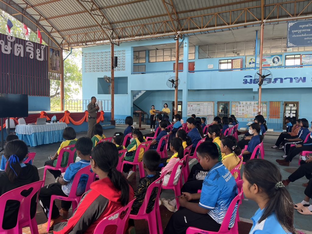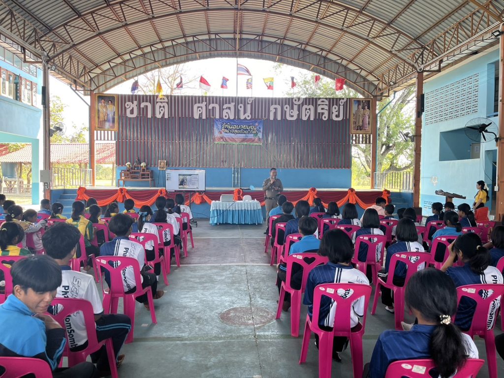 ณ โรงเรียนบ้านผางอุดมสมบูรณ์ ต.ชุมแสง อ.จอมพระ จ.สุรินทร์ เพื่อให้รู้และเข้าใจถึงโทษ ผลกระทบ และพิษภัยของยาเสพติด