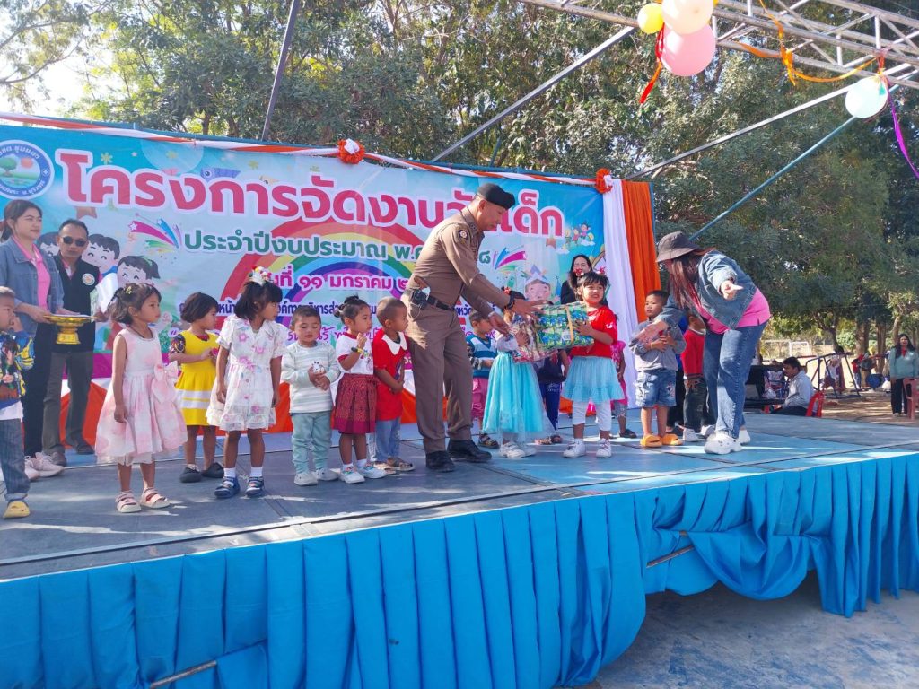 ร.ต.อ.ณรงค์ โปรยกลาง รอง สวป.สภ.เมืองลีง , ร.ต.ท.บุญศรี เหมาะใจ รอง สว.(ป.)สภ.เมืองลีง มอบของขวัญ และร่วมกิจกรรมเนื่องวันเด็กแห่งชาติที่ องค์การบริหารส่วนตำบลชุมแสง