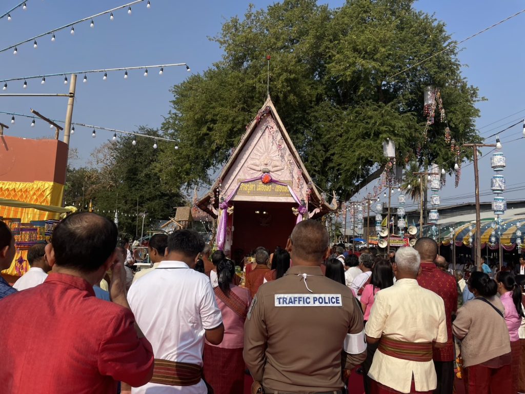 ว.4 อำนวยความสะดวกด้านการจราจร ร่วมพิธีเซ่นศาลปู่ตาเมืองลีง-เชียงสง พิธีเซ่นปะกำ
