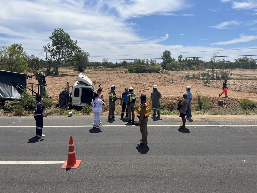 ออก ว.4 เหตุ ว.40 รถกึ่งพ่วง 18 ล้อ หลับในชนเสาไฟฟ้า