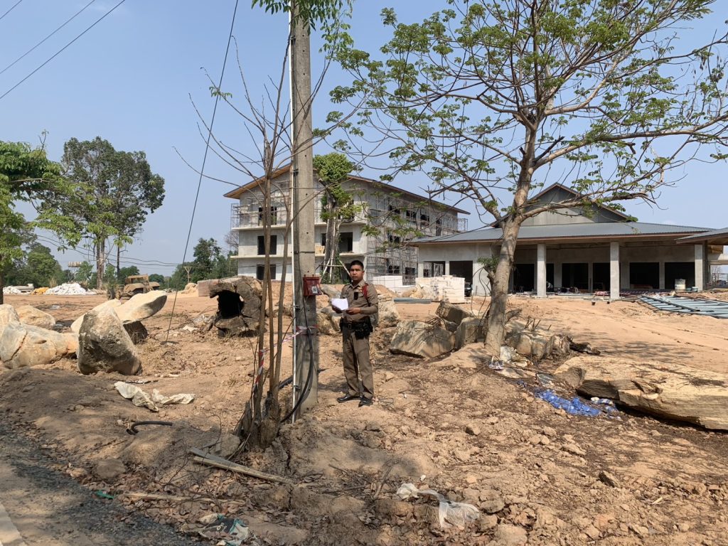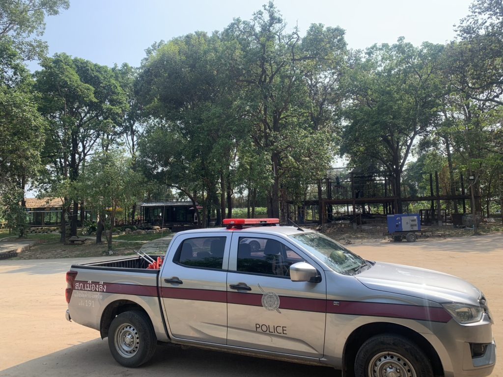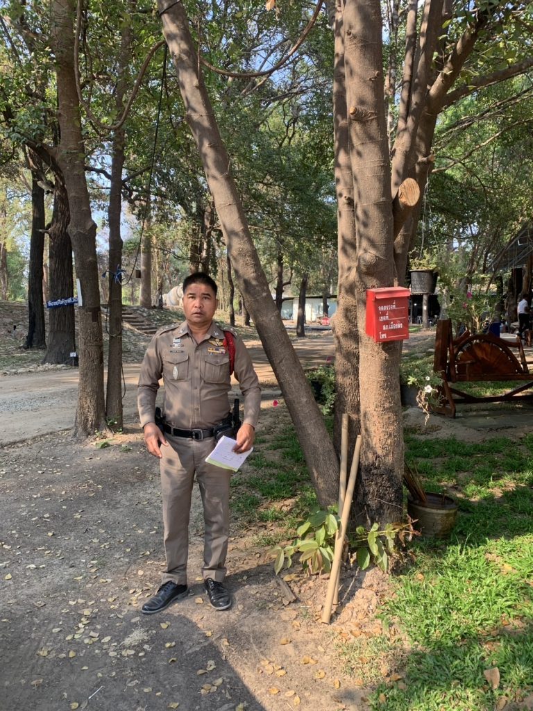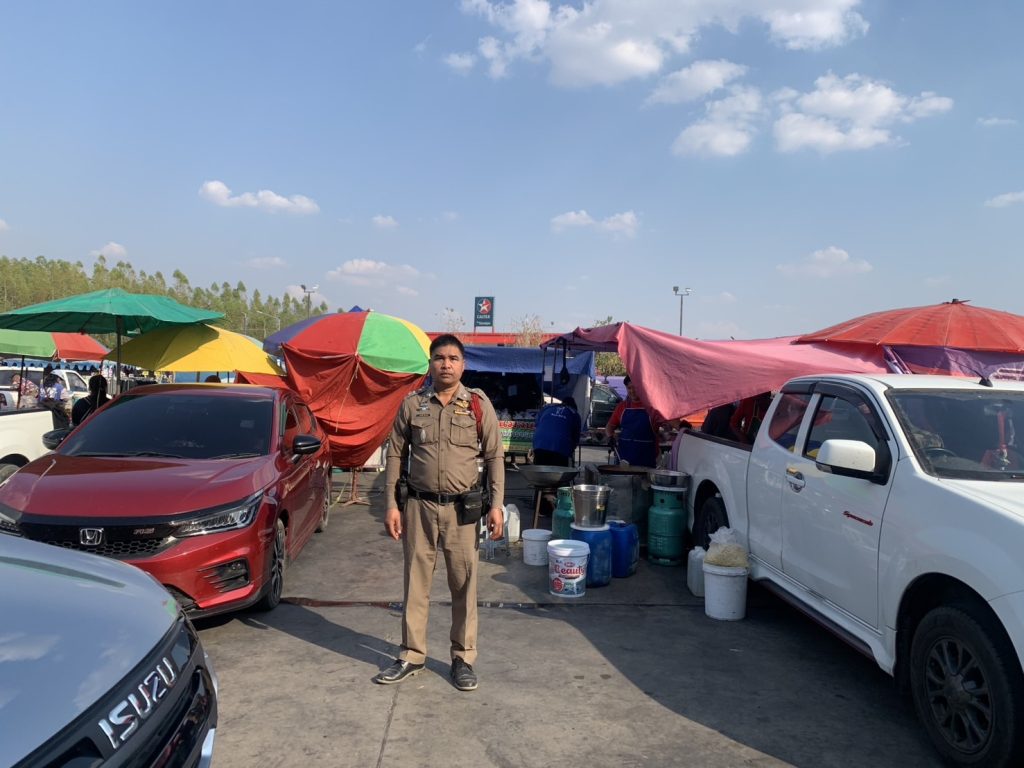 - บริเวณประตูเข้า-ออก กำลังตำรวจ 4 นาย และอพปร.