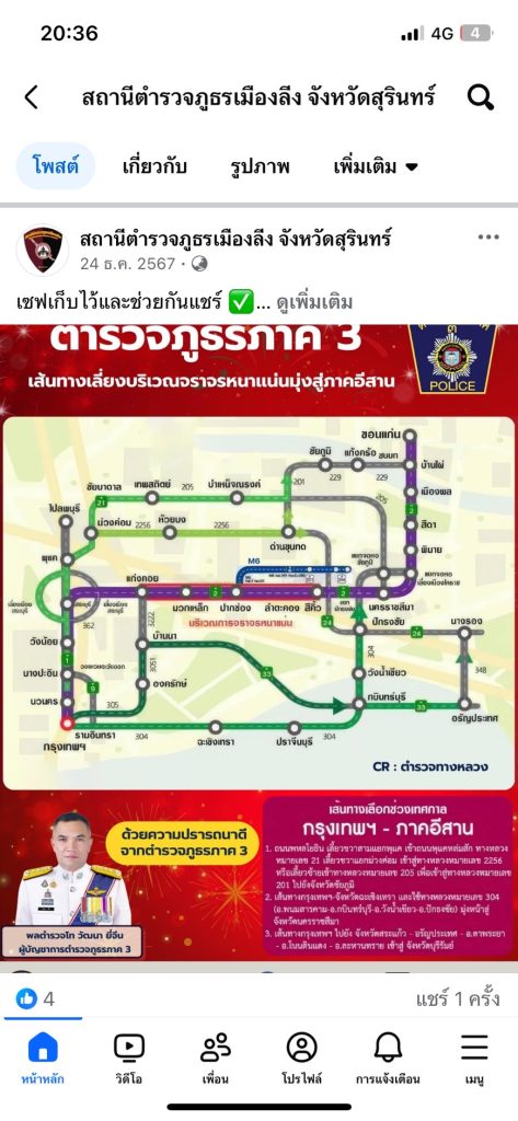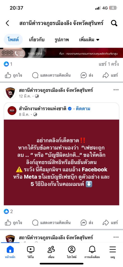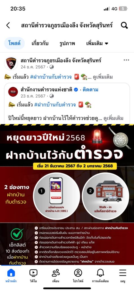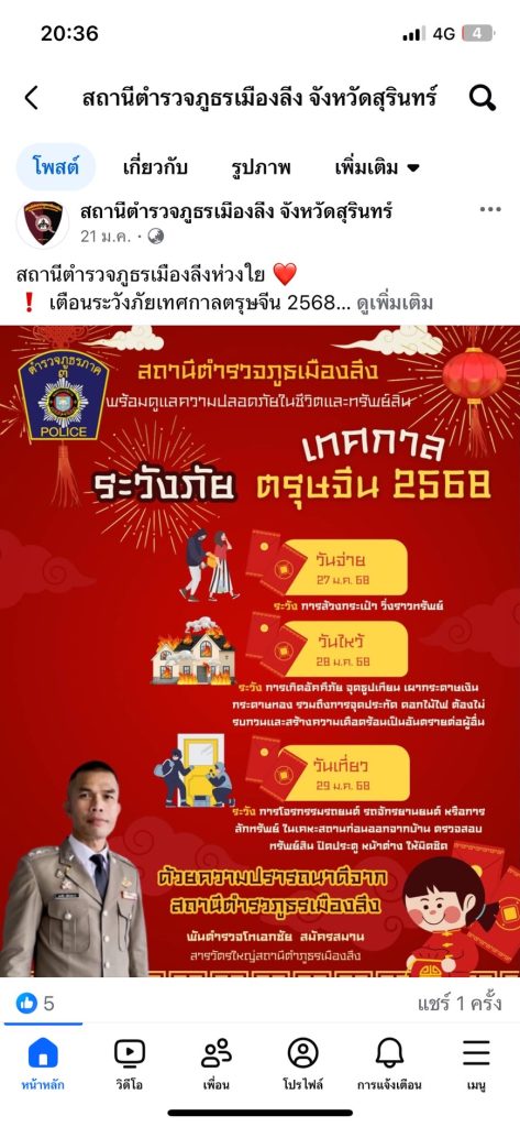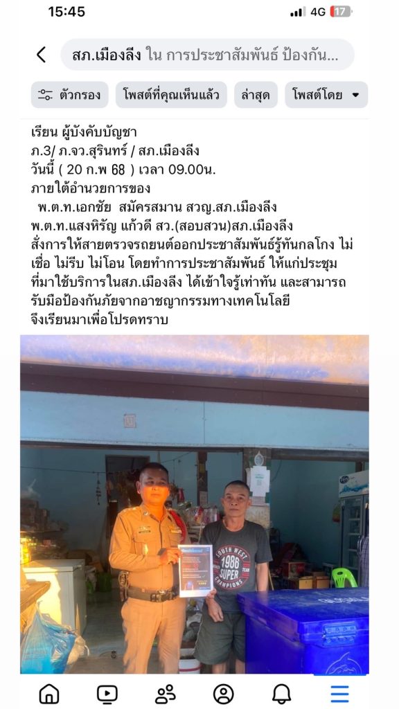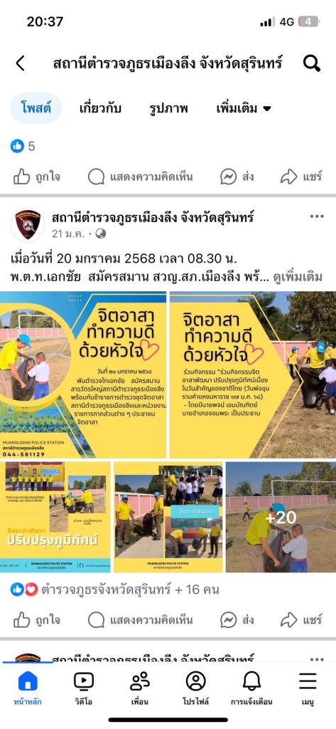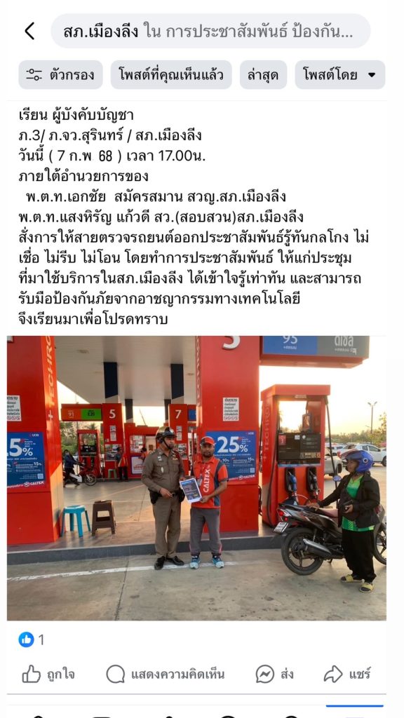 การเผยแพร่ประชาสัมพันธ์ของสถานีตำรวจภูธรเมืองลีง ประจำปีงบประมาณ พ.ศ.2568 ผ่าน Facebook