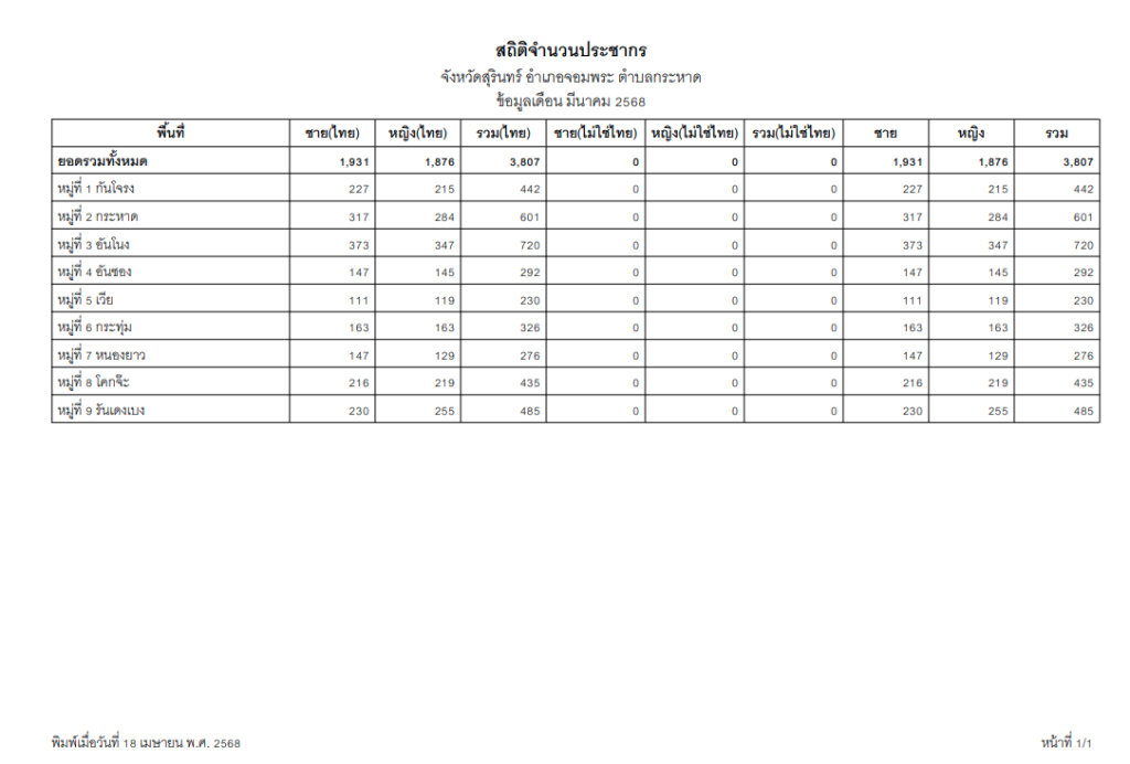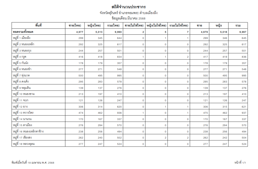 ข้อมูล ณ วันที่ 18 เมษายน 2568